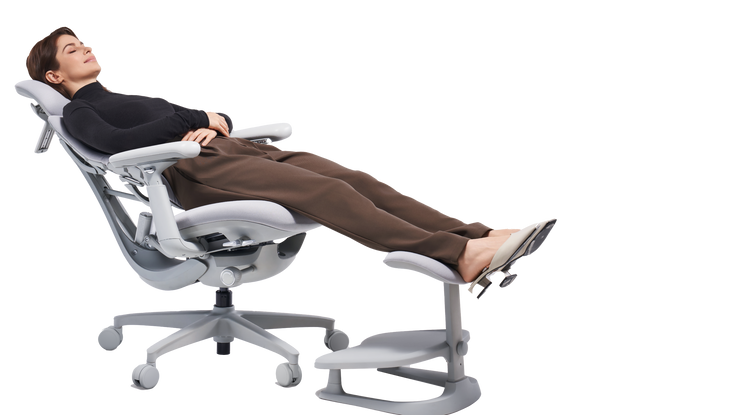 The Omni offers an optional comfort footrest in two heights (6cm for users 170-180cm, 10cm for users 153-169cm), tailored to the common 75cm fixed desk height in Asia, ensuring an ergonomic sitting posture. The footrest enhances leg comfort, similar to Humanscale’s footrest accessory, but Omni’s height options are more precise.